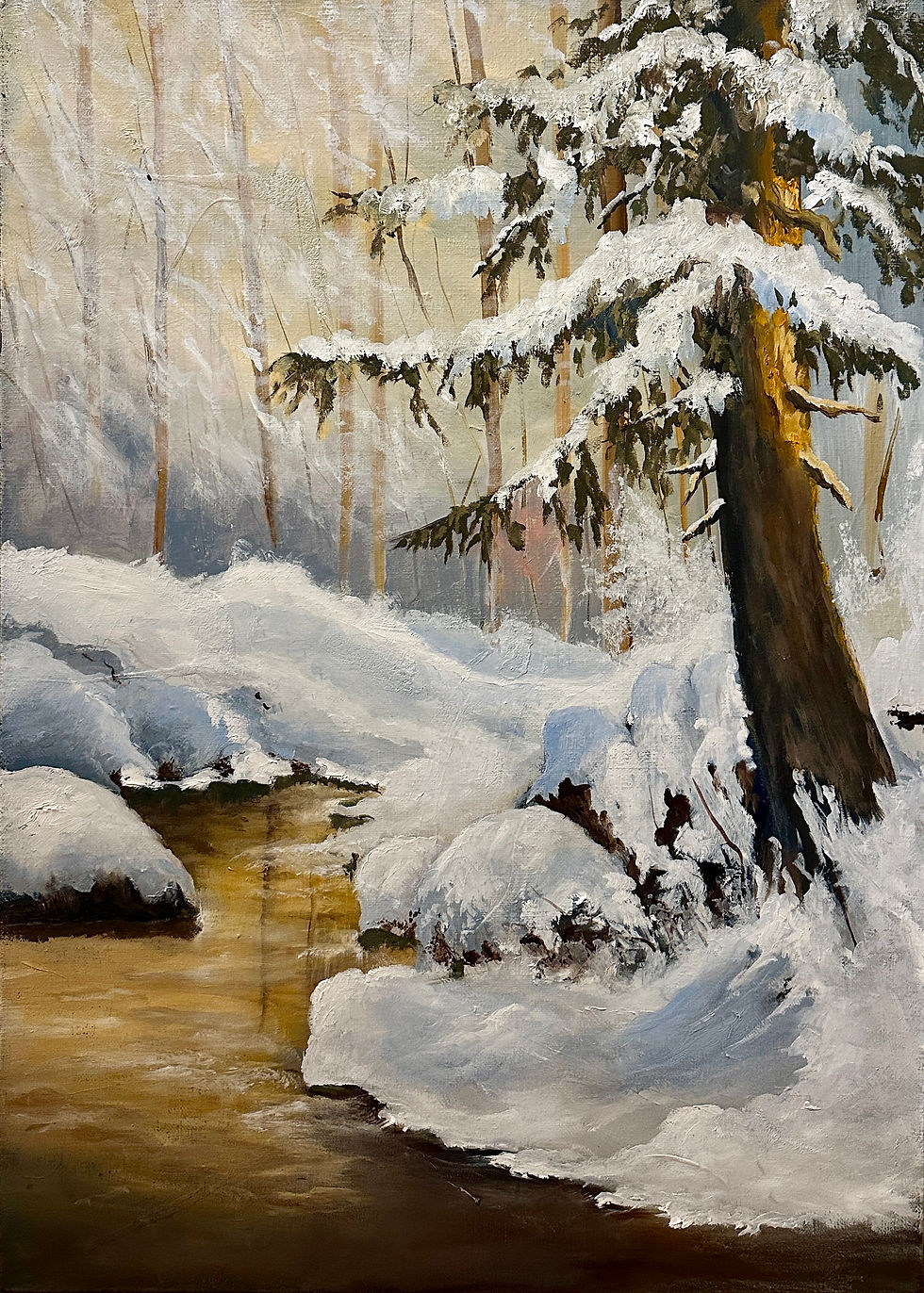 Paintings during 2000-2023 are mostly made with acrylics, but recent experimentation with water soluble oils and other media creates new possibilities, so now I am exploring how the various elements will play together on the canvas.